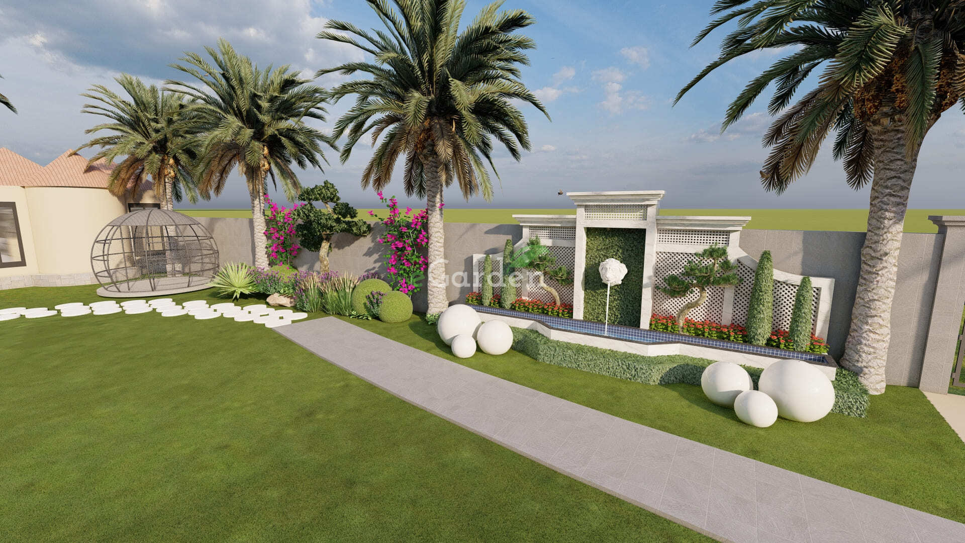 The landscape plan for Sophia Farms reflects an approach to creating a harmonious environment. To enhance the park’s symmetry and visual appeal, tracks were incorporated, aligning the landscape. A modern theme guides the overall design, featuring a sophisticated blend of horticulture and softscape elements.